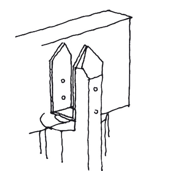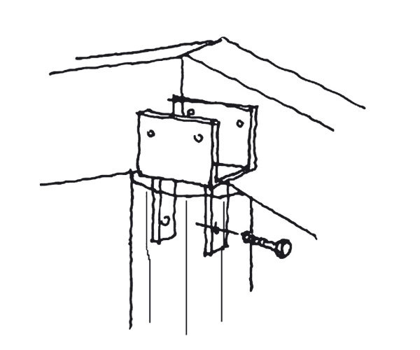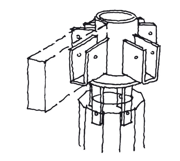 | Poistenie krokiev vo vrchole | Spojenie trámov na jednom stĺpe |
