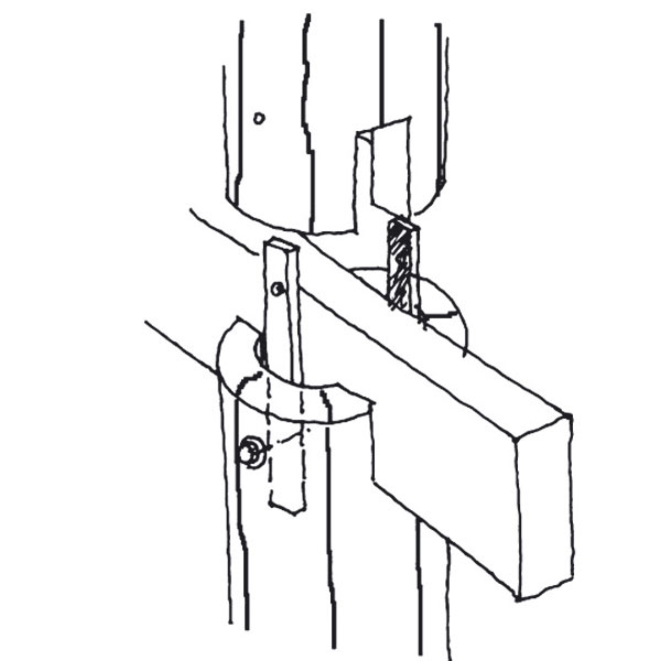 | Poistenie trámu voči klopeniu | Polovičné zapustenie trámu o stĺp a dĺžkové nastavenie stĺpu |