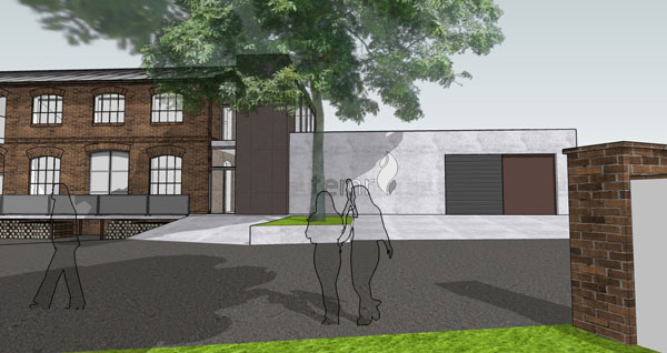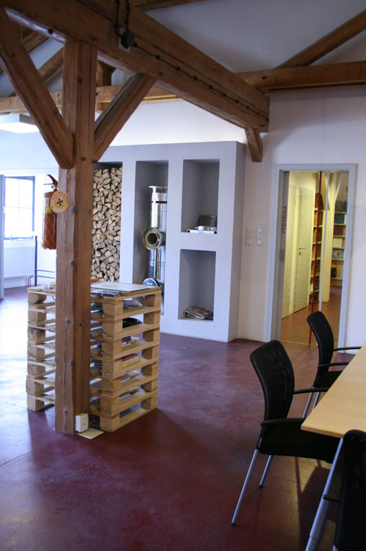 Budova vývojovej dielne je postavená z tvárnic Porotherm, vzhľadom na veľké rozpony v priestore dielne sú použité betónové stĺpy, obvodové steny sú omietnuté, na stropoch sú ponechané priznané železobetónové dosky. Prepojovací priestor je maximálne zasklený, sčasti sa využíva ako skúšobňa, takže pri vstupe do budovy počuť praskanie v kachľových vložkách, čo tvorí príjemné spojenie s jednoduchým interiérom vstupu. Celá budova je vykurovaná kachľami a jej prevádzka je preto veľmi úsporná, hoci sa pôvodná budova zateplila len v streche a okná v tenkých kovových rámoch sa vymenili za drevené eurookná s možnosťou otvárania.