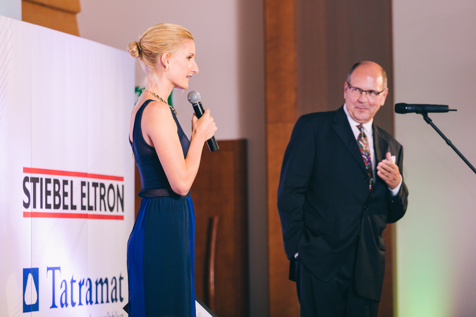 Adela Banášová, ktorá večerom hostí sprevádzala, a pán Ulrich Stiebel, syn zakladateľa spoločnosti STIEBEL ELTRON a jeden z jej majiteľov.
