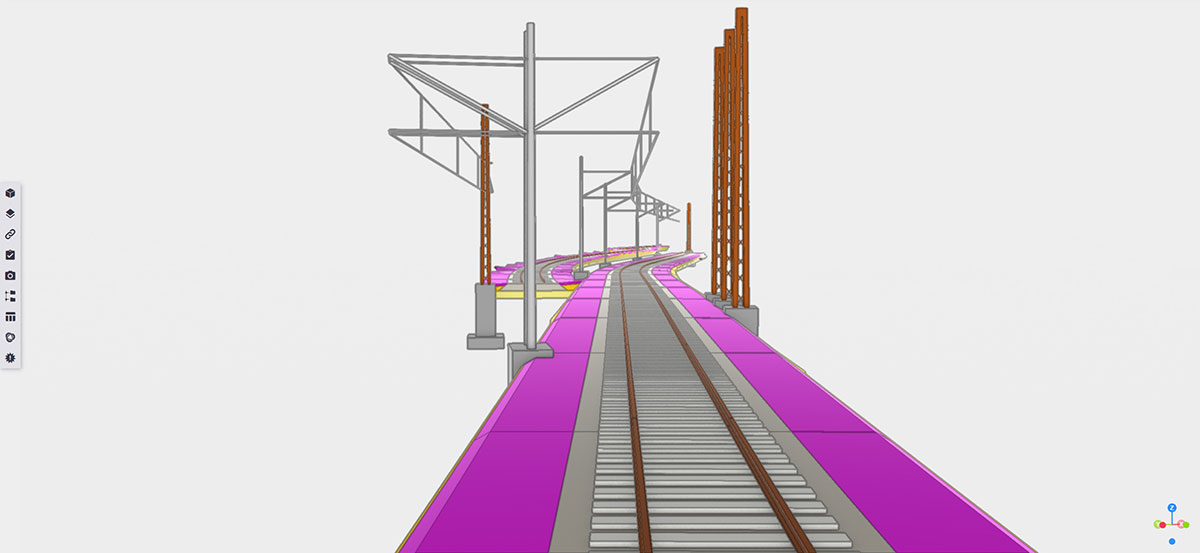 Softvér však dokáže spracovať aj ďalšie druhy podkladov, napríklad 3D modely, ale tiež klasickú 2D dokumentáciu v podobe situačných plánov. Dôležitým prínosom pre stavebný tím bolo súbežné zobrazenie dát vytvorených počas výstavby (napríklad georeferencovaná snímka z dronu) a zároveň tzv. jednotnej železničnej mapy zobrazujúcej staničenie infraštruktúry ŽSR.