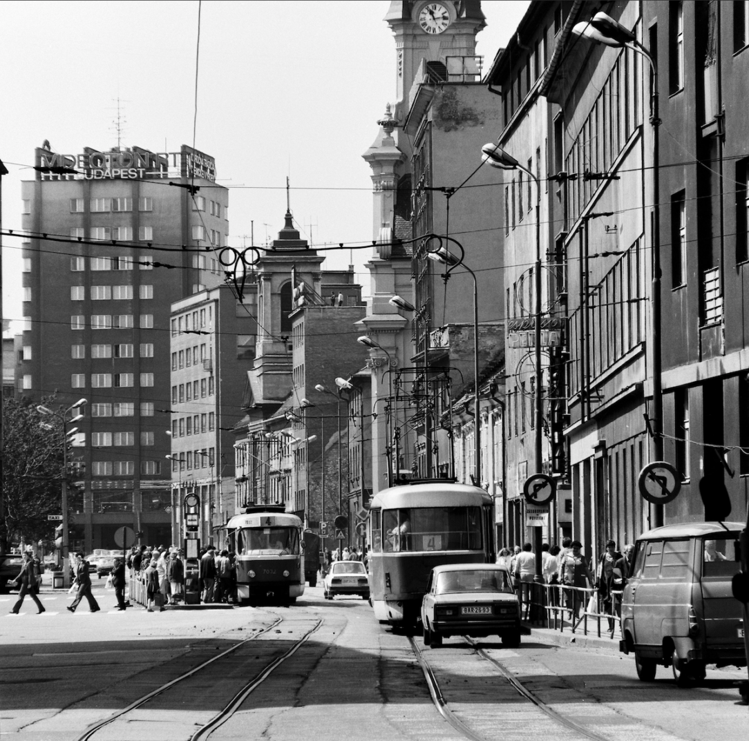 Fotografia centra Bratislavy s budovou Manderláku z roku 1988.