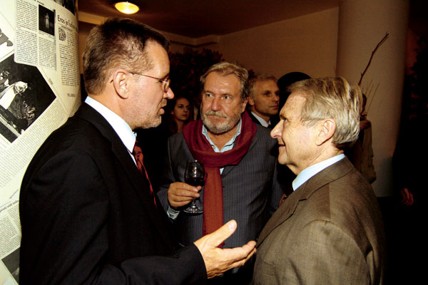 | Zľava: Gábor Zászlós zo spoločnosti TriGránit v rozhovore s hlavným architektom Bratislavy Štefanom Šlachtom a Jurajom Sternom |