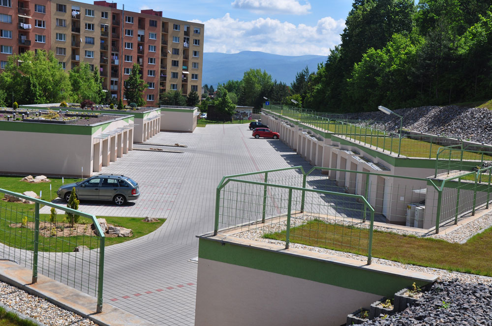 Stavba je príkladným realizovaným investičným zámerom stavebníka (investora) a spoluprácou s architektom projektantom využitia pozemkov občianskej vybavenosti na garážovanie osobných automobilov obyvateľov nielen partizánskeho Sídliska Šípok v priam sofisticky usporiadaných garážach so zelenými strechami, dokonca s kaviarňou.