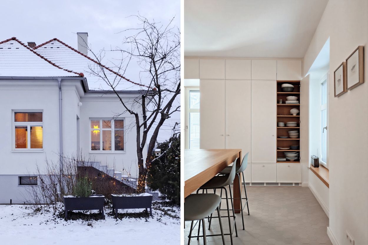 „Obývačka a hlavná spálňa sú orientované do ulice, zatiaľ čo kuchyňa bola zo strany záhrady blokovaná špajzou a dodatočne obostavaným, pôvodne exteriérovým vstupným schodiskom. Okno z kuchyne smerovalo do prejazdu a na susedný pozemok. Iba chodba a detská izba mali výhľad do záhrady, no aj ten bol limitovaný hospodárskymi stavbami,” opisujú architekti z ateliéru KCA pôvodnú dispozíciu.