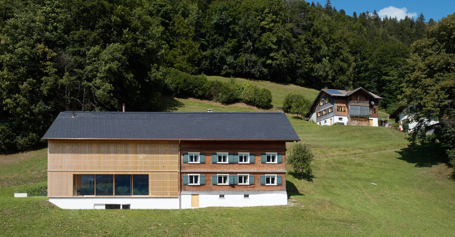 Reakcia architektov zo štúdia firm architekten je odpoveďou na to, ako vyriešiť problém s mnohými starými hospodárstvami, ktoré sa v okolí nachádzajú, a vniesť do nich opäť život. Časť tvoriaca nový dom je riešená veľmi diskrétne, elegantne a s citom.