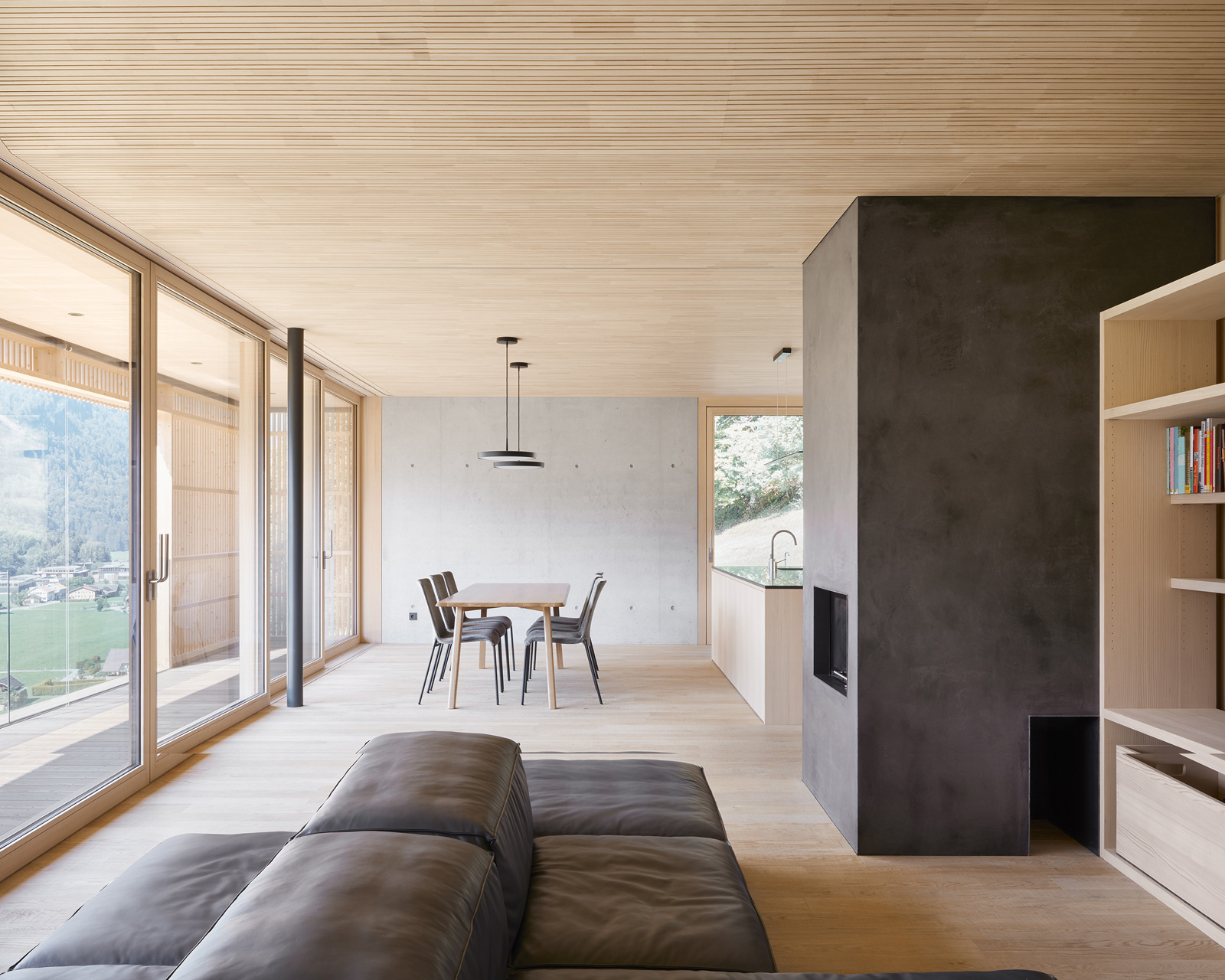 V interiéri hrajú prím dva základné materiály – pohľadový betón a drevo zo striebornej jedle