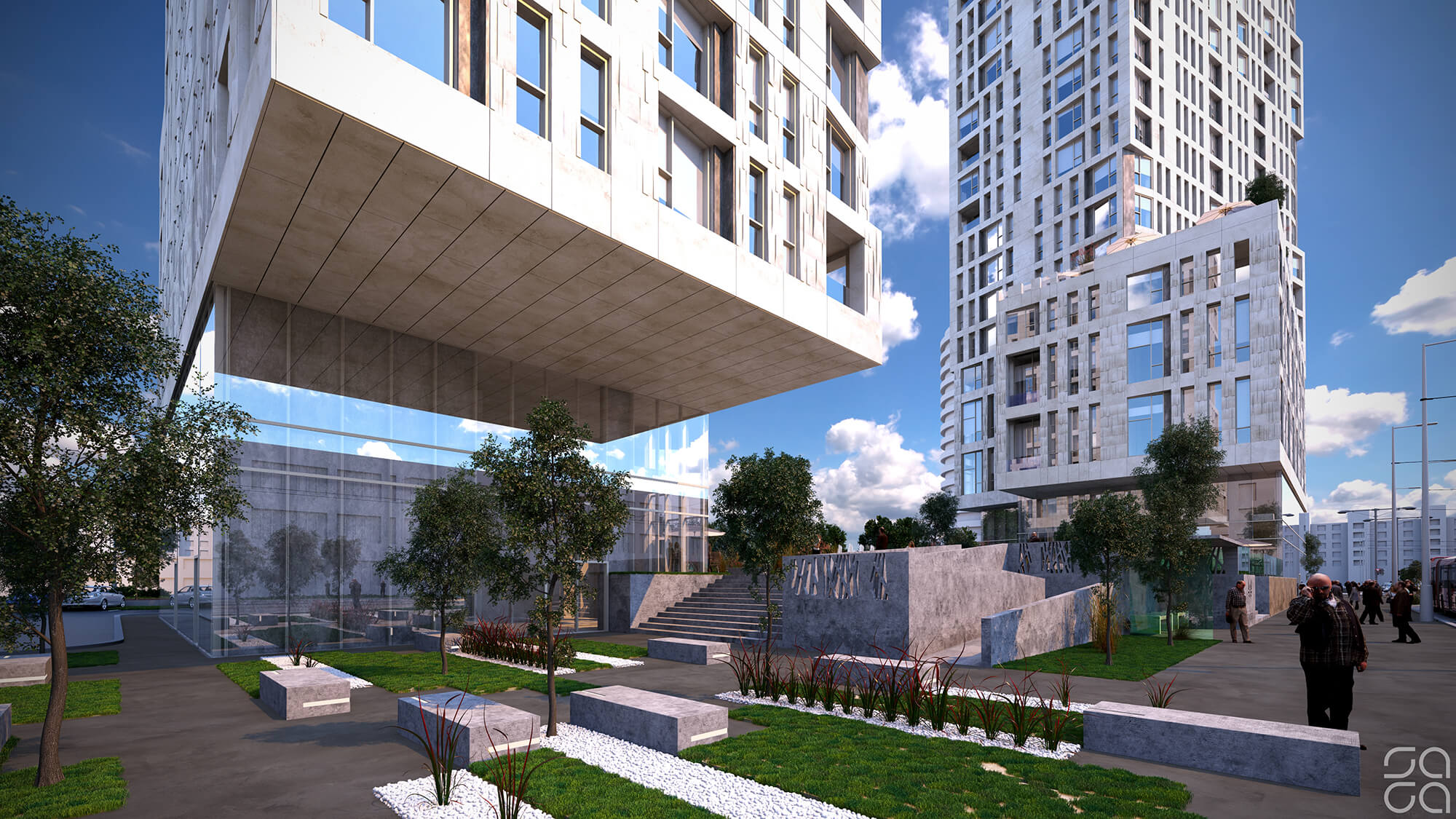 Verejný priestor obsahuje vodné prvky, zeleň, ale aj priestor na športovanie a je priamo prepojený s Račianskou ulicou. Do podlažnosti projektu ale zámer zasiahol minimálne, vyššia budova sa stále nachádza bližšie k frekventovanej križovatke a stáva sa jej dominantou. V minulosti bolo toto mestskou časťou považované za zásah, ktorý „výrazne mení charakter stabilizovaného územia” (aj keď tento pojem je veľmi subjektívny a nejasný).