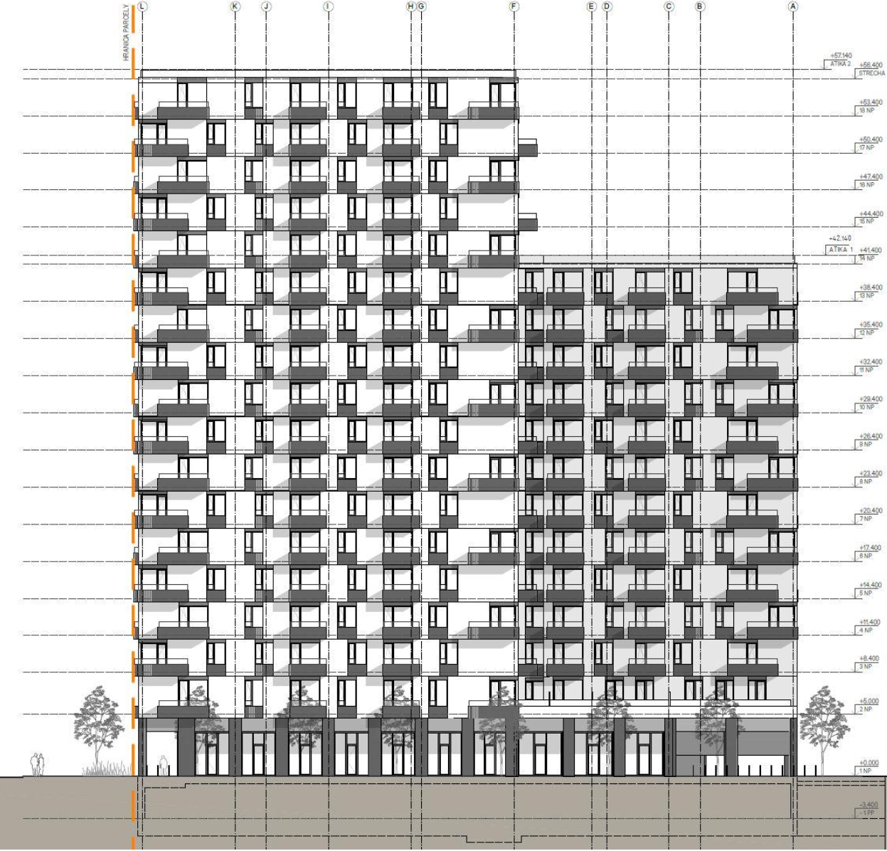 Východný pohľad na plánovaný bytový dom od Strabagu