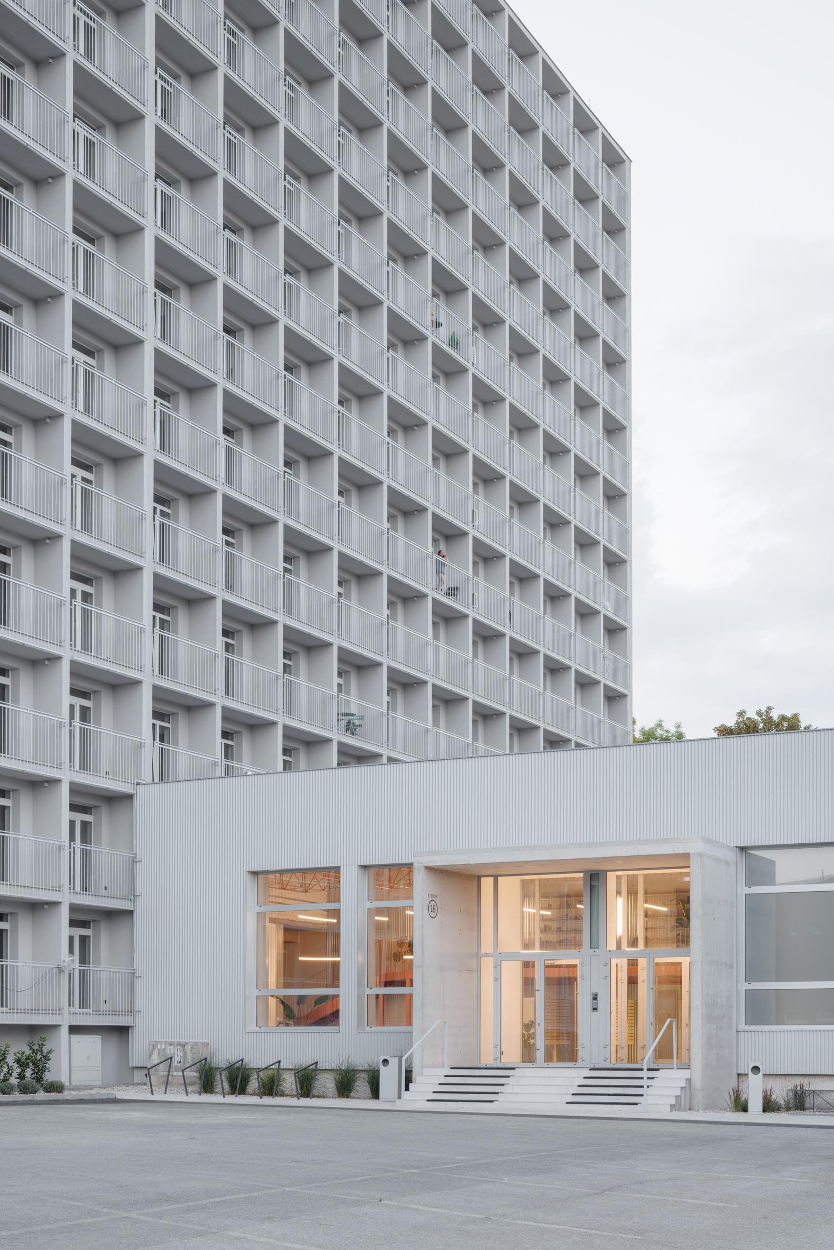 Architekti nechali vyniknúť pôvodnú geometrickú mriežku balkónov.
