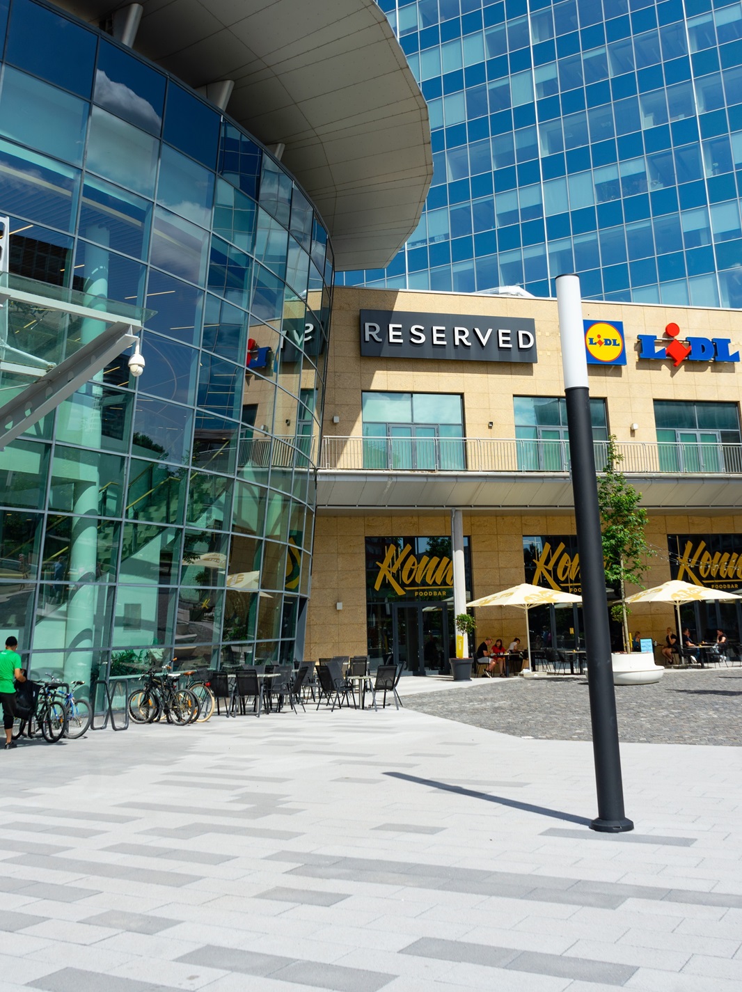 Zrekonštruovaný priestor námestia pred vstupom do nákupného centra Vivo!