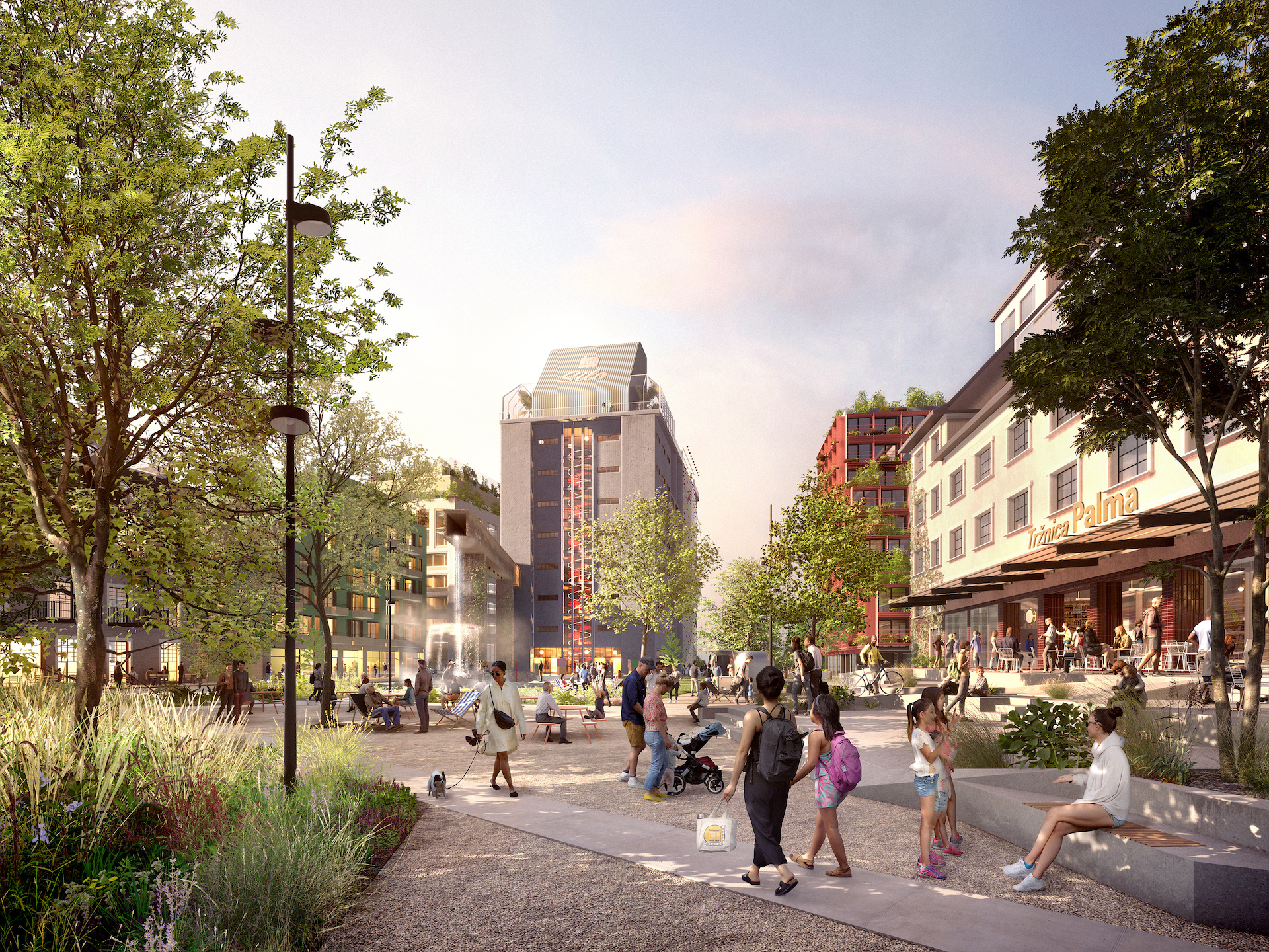 Hlavné námestie Palmy – v pozadí badať zrekonštruované silo, v Lisovni (vpravo) bude vybudovaná tržnica