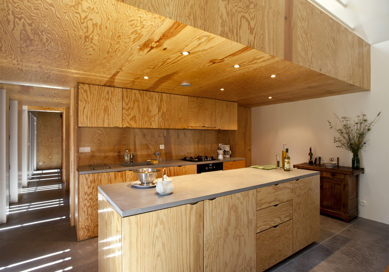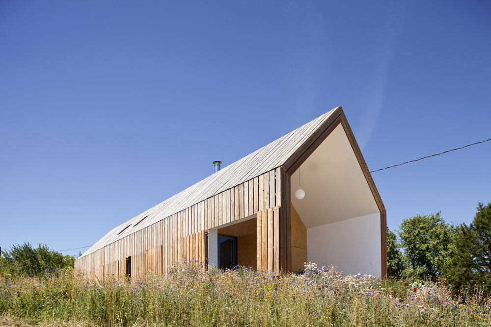 Tvar domu je daný vonkajšou líniou typickej sedlovej strechy s dvomi štítmi. Tento podlhovastý tvar vytvára veľkorysý vnútorný priestor. Vlhké zóny sú situované v srdci domu. V interiéri sa použili preglejkové panely, ktoré tvoria základ pre mezanín.
