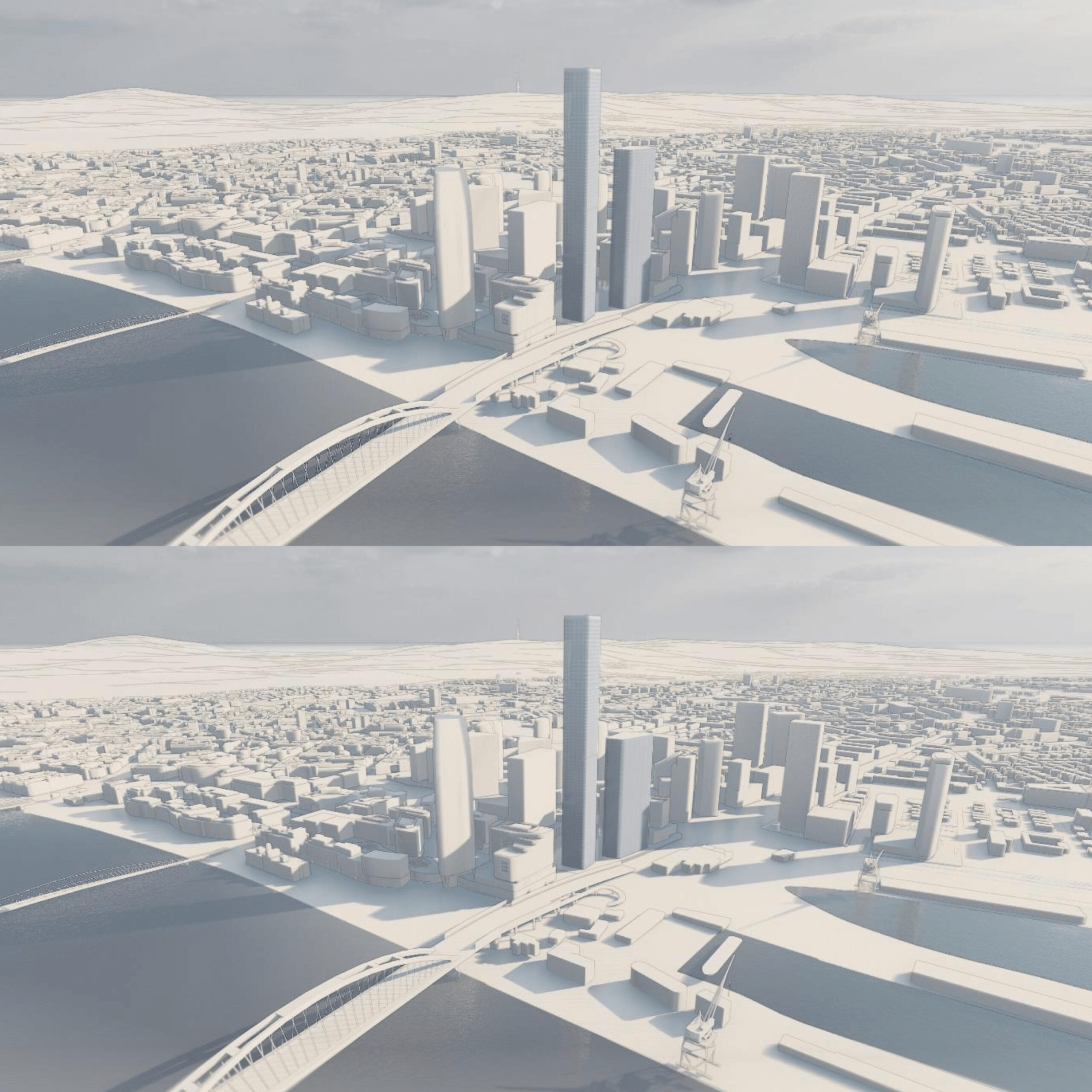 Pôvodne zmýšľaná verzia nového mrakodrapu spred niekoľkých mesiacov tak nahrádza myšlienka vybudovať hneď dva mrakodrapy. „Doplnením kompozície výškovými budovami umiestnenými ďalej od Dunaja by sa presunulo ťažisko siluety do strednej časti downtownu. Vďaka tomu by bol vyváženejšie dosiahnutý kompozičný princíp výškovej gradácie,” vysvetľuje architekt Radoslav Grečmal z ateliéru GFI.