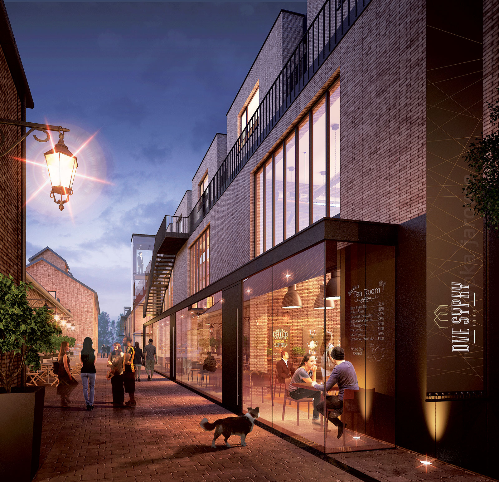 Atmosféra novovytvorenej uličky pre peších na konci námestia s prevádzkami a službami