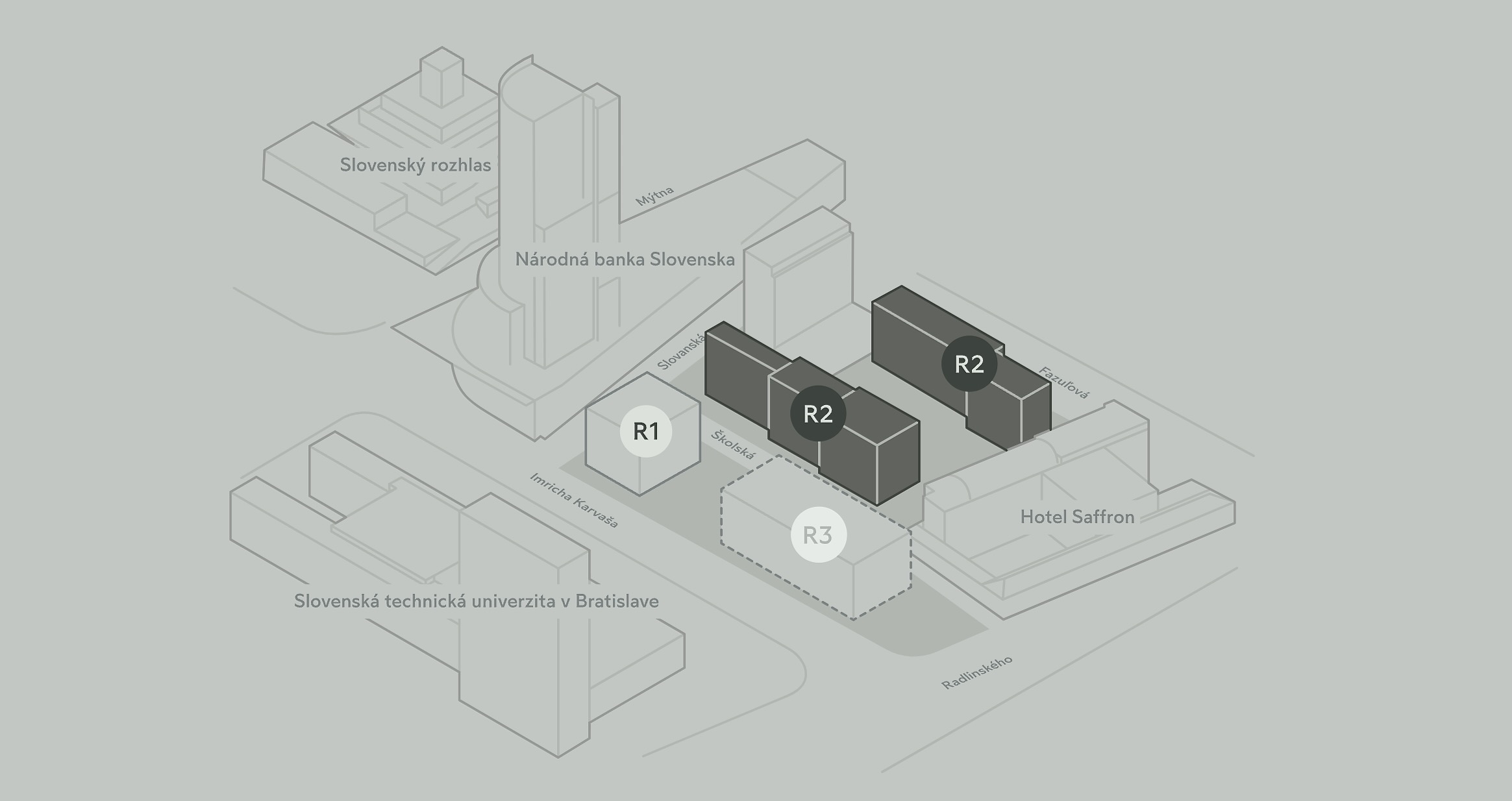 Situácia všetkých etáp projektu, z ktorých sú dnes predstavené prvé dve – R1, R2