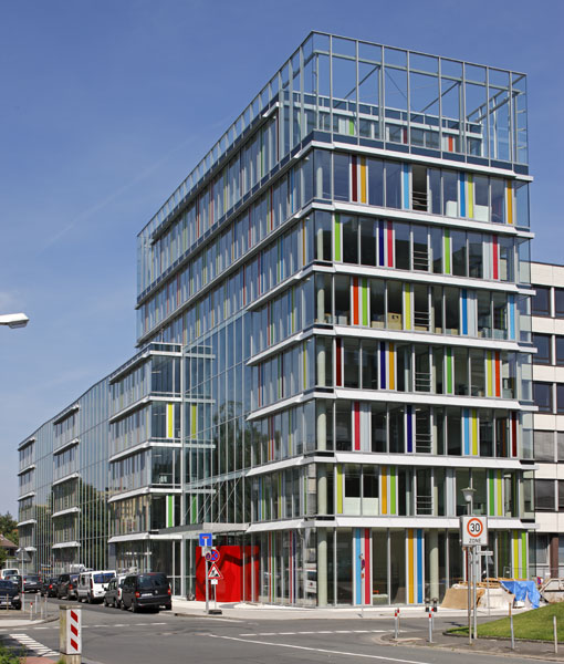Feldmeyer: To je veľmi osobná výpoveď nášho kolegu Duka-Kyua Ryanga, ktorý navrhol dizajn. Všeobecne môžeme povedať, že v Nemecku bola dlhý čas jedinou farbou v architektúre sivá. Medzičasom však môžete sledovať trend, že farebná fasáda si čoraz viac preráža svoju cestu do architektúry.