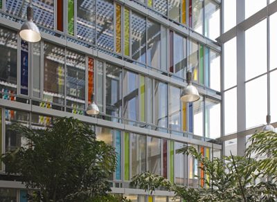 Z ulice možno vidieť transparentnú fasádu, do konštrukcií átriových sklených striech boli integrované fotovoltické články. Aký je celkový výkon tohto systému?