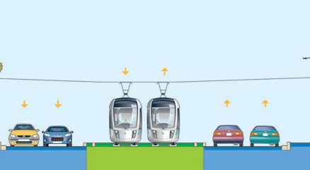 Grumbachov ateliér koncipoval zastávky električiek, ktoré okrem nevyhnutného mobiliáru poskytujú priestor aj stromom. Tie sa stali leitmotívom pre dizajn prístreškov či stĺpov elektrického trakčného vedenia. Stĺpy sú šikovne umiestnené pomedzi stromoradie. Tým, že ich nevyhnutnú prítomnosť využili na zavesenie väčšiny pouličného osvetlenia, dosiahli odbremenenie parteru od vizuálnych prekážok. Tento koncept ďalej prepracoval Louis Clair, ktorý električke vdýchol zmysel pre nočný život vďaka špeciálnemu bielemu osvetleniu. V noci pomáha orientácii na bulvároch, pričom zostáva skôr estetickým ako funkčným osvetlením.