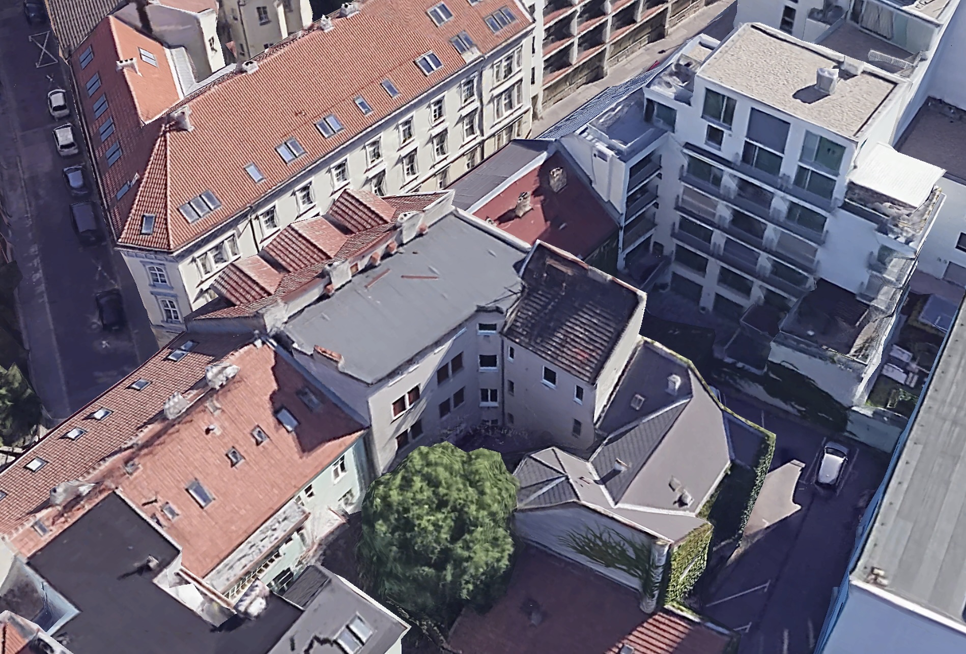 Bytový dom na Kozej 11 v Bratislave – pohľad na zadné stavby vo dvore