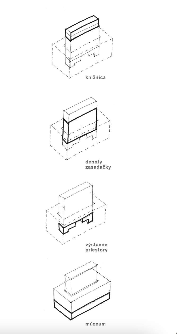 Nové sídlo Ústavu pamäti národa – zobrazené sú funkcie jednotlivých podlaží