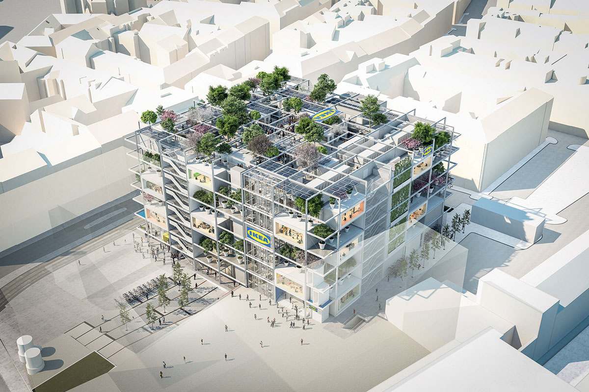 Striedanie plných a prázdnych blokov umožnilo vytvoriť v budove priestor pre les.