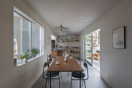 Určite ste už videli domy rôznych tvarov. Ale zrejme nie dom v tvare písmena N navrhnutý s typickým japonským minimalistickým prístupom. Vďaka špeciálnemu tvaru vznikli zaujímavé zákutia, miesta medzi interiérom a exteriérom. Netypické je aj použitie niektorých materiálov. Všimnite si, ako architekti zo štúdia Tato Architects použili polykarbonátové dosky.