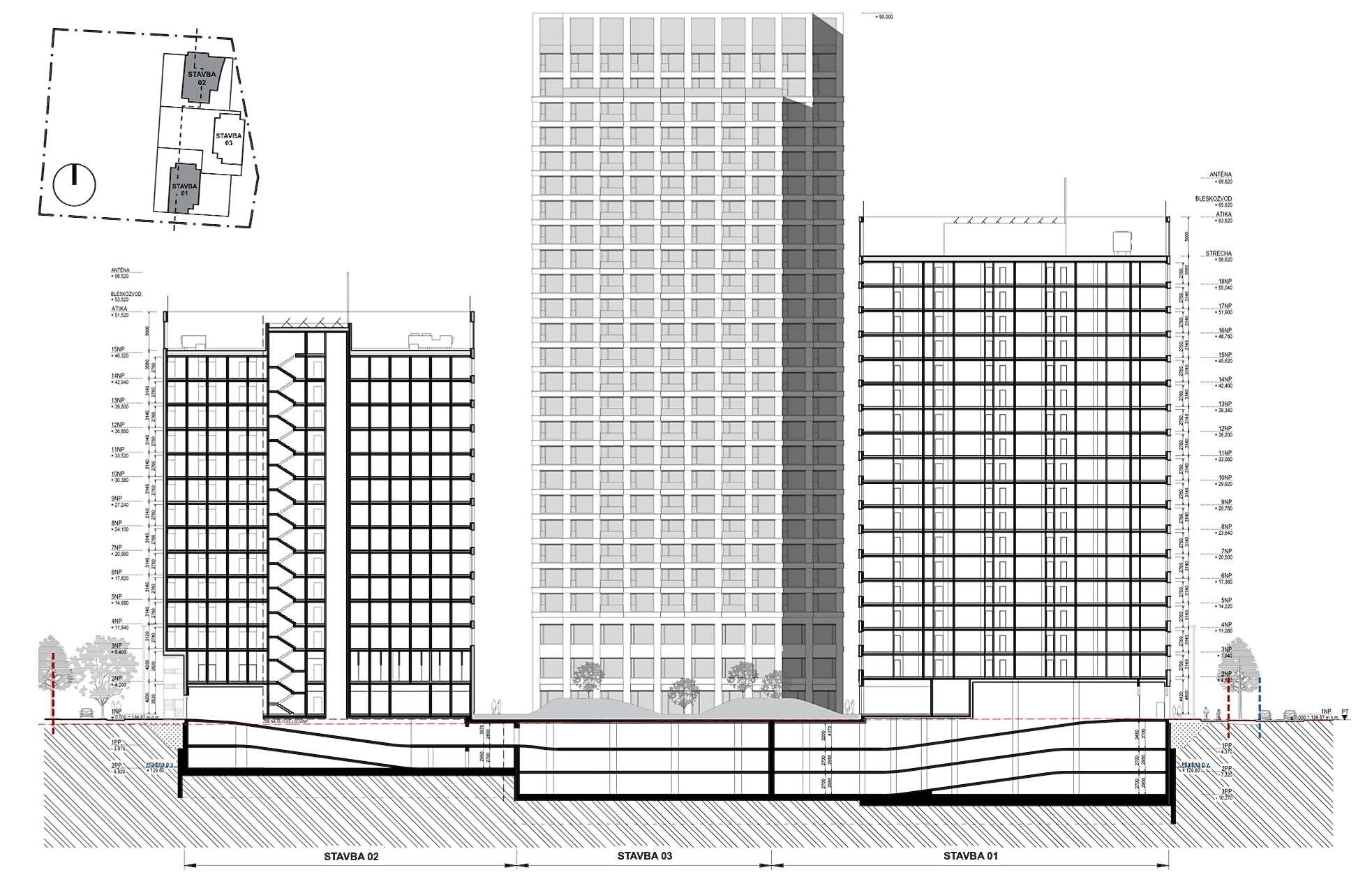 Projekt District 15 developera JTRE – pozdĺžny rez