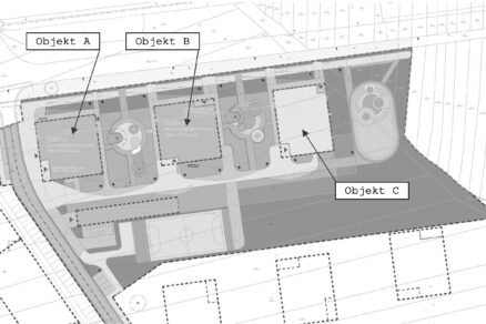 Developer začlenil do tohto projektu prvé tri budovy ležiace pri Harmincovej ulici. Plocha riešeného územia je v tomto prípade 14 371 štvorcových metrov a zastavaná bude len časť pozemku o veľkosti 2 198 štvorcových metrov. Vzniknú tu dva bytové domy A a B a obytovacie zariadenie na krátkodobé pobyty, objekt C.