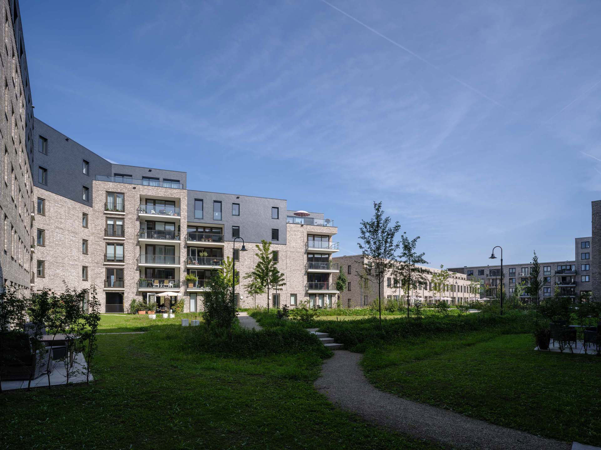 Spoločné, na zeleň bohaté, nádvorie tiež prispieva k sociálnej interakcii a budovaniu komunity. KCAP navrhol záhradu s bohatou výsadbou. Nie je to monofunkčná okrasná záhrada, ale zelená obývačka s rôznym využitím.
