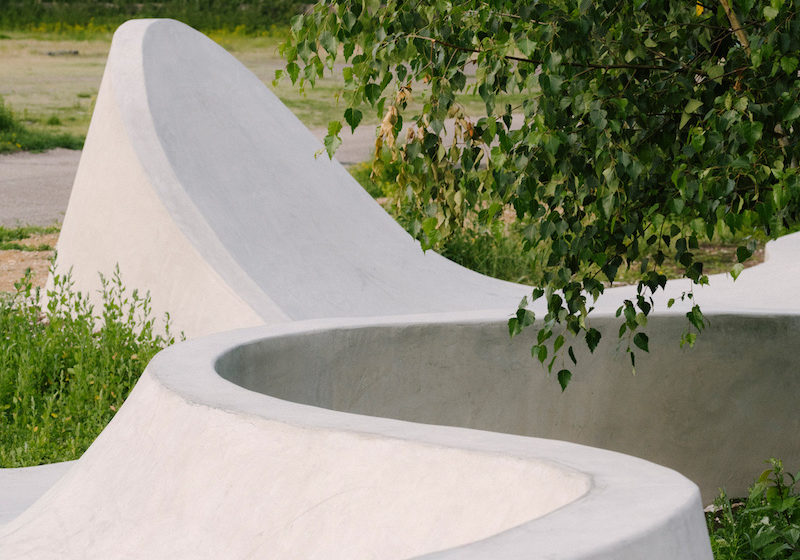 „Stavba skejtparku Continua skúma možnosti vlhkého betónu,“ opisujú stavebný proces architekti.