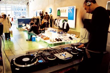 Detail interiéru Armani v Hongkongu.