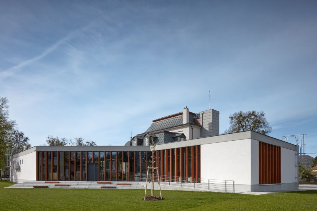 Rastúci význam knižnice, sídliacej v malebnej historickej vile, vyvolal logickú potrebu jej rozšírenia. Preto sa rozhodlo o usporiadaní otvorenej architektonickej súťaže. Víťazný návrh vytvorilo architektonické štúdio ČTYŘSTĚN, ktoré prišlo s myšlienkou doplniť vilu o modernú prístavbu.