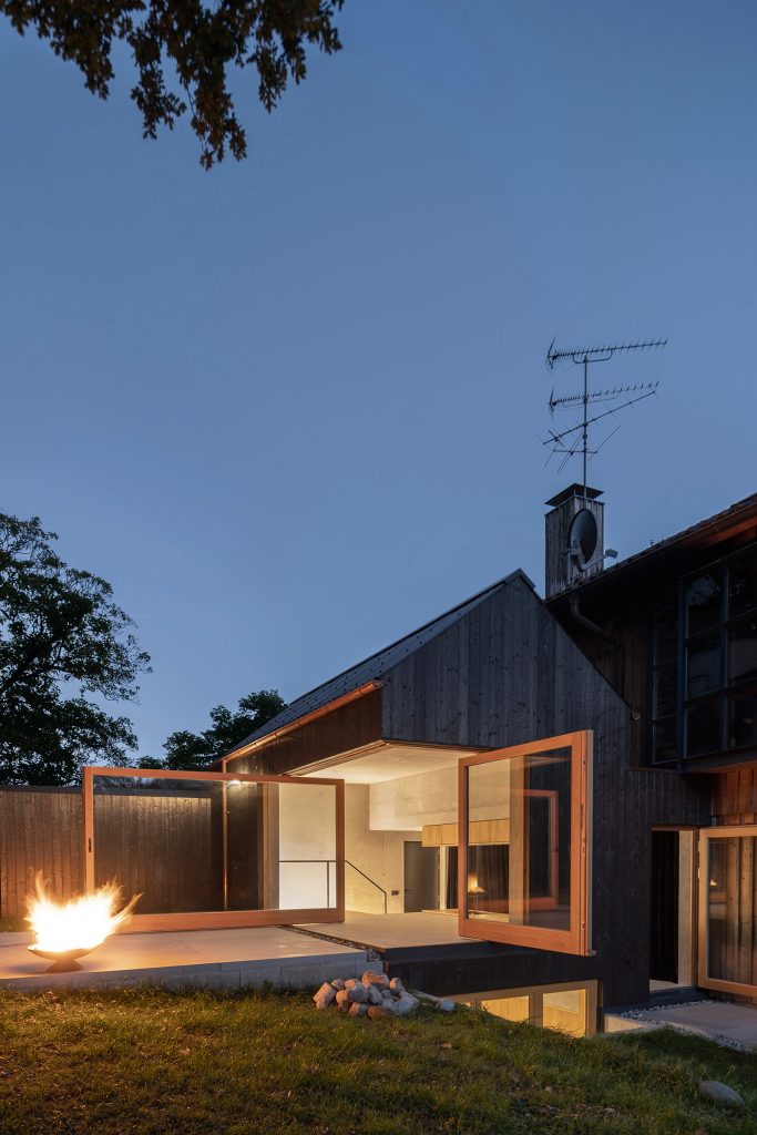 Už na prvý pohľad je jasné, prečo tento dom nesie názov čierny – jeho fasáda je z opáleného dreva. Architektonický koncept odmietal chemické ošetrenie dreva.