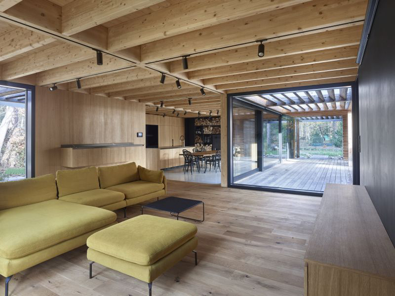 Dom bol navrhnutý pre obyvateľov, ktorí milujú prírodu. Garáž ani iný priestor na uskladnenie vozidiel preto nie sú jeho súčasťou. Naopak, ponúka veľkorysé prepojenie interiéru s exteriérom – a to nielen vďaka použitým materiálom, ale najmä veľkým preskleným plochám a viacerým vstupom, vďaka ktorým môžu majitelia dom kedykoľvek opustiť a z inej strany sa doň opäť vrátiť. Ak si však želajú viac súkromia, môžu využiť individuálne ovládané exteriérové screenové rolety. Stavba sa tak stáva prirodzenou súčasťou krajiny a zároveň rešpektuje životný rytmus svojich obyvateľov.