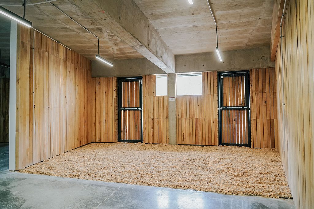 Drevo ako materiál patrí neodmysliteľne k poľnohospodárstvu a vidieku. Obklady z dubových dosiek boli v projekte použité na fasáde Minifarmy, v interiéri stajní a prístreškov pre hospodárske zvieratá. Pri projektovaní sa zhodli autori návrhu s investorom, že drevo nesmie chýbať v budove školy a musí dostatočne zdôrazniť atmosféru agropotravinárskeho sektora. „Preto sme v exteriéri s drevom neskončili a navrhovali ho aj vo vnútorných priestoroch školy po obvodových stenách a na schodiskovej konštrukcii vo forme obkladov z brezovej preglejky,“ dodali autori .