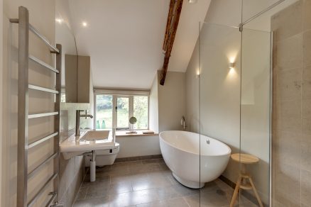 Nachádza sa tu tiež príjemná kuchyňa s obývacou miestnosťou a ďalšie súkromné priestory. Budova dostala aj novú zinkovú strechu odkazujúcu na poľnohospodárske dedičstvo pozemku.