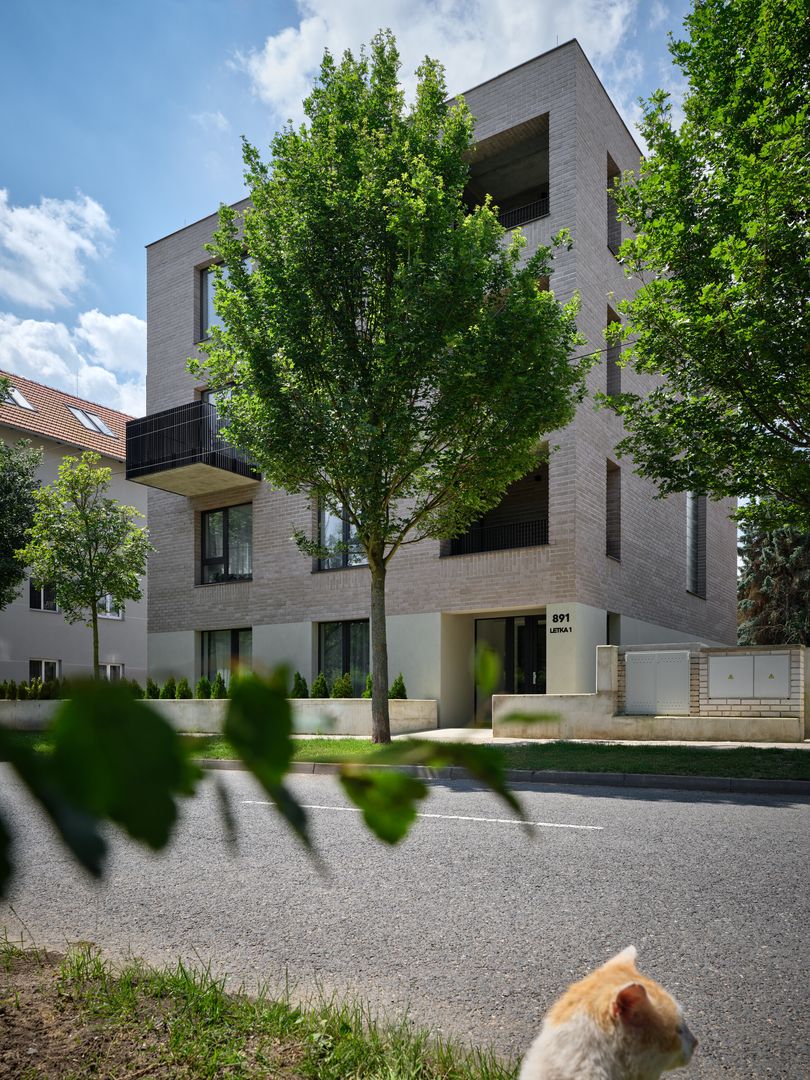 Moderný bytový dom v malom meste odkazuje na jeho industriálnu minulosť
