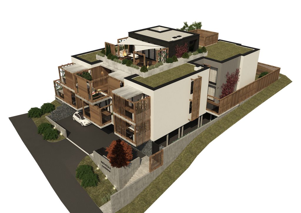 V susedstve lesoparku stavia developer podľa návrhu popredného nitrianskeho ateliéru Csanda-Piterka. Objekt bude mať päť bytov – štyri štvorizbové a jeden mezonet so štyrmi izbami a s terasou. Budova má dve nadzemné podlažia, z toho jedno ustúpené, kde sa nachádza spomenutá terasa.