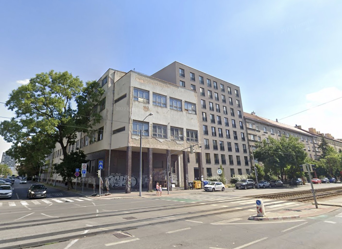 Kníhtlačiareň Svornosť s už obnoveným Bytovým domom Račianska - akutálny stav Zdroj: Google Street View