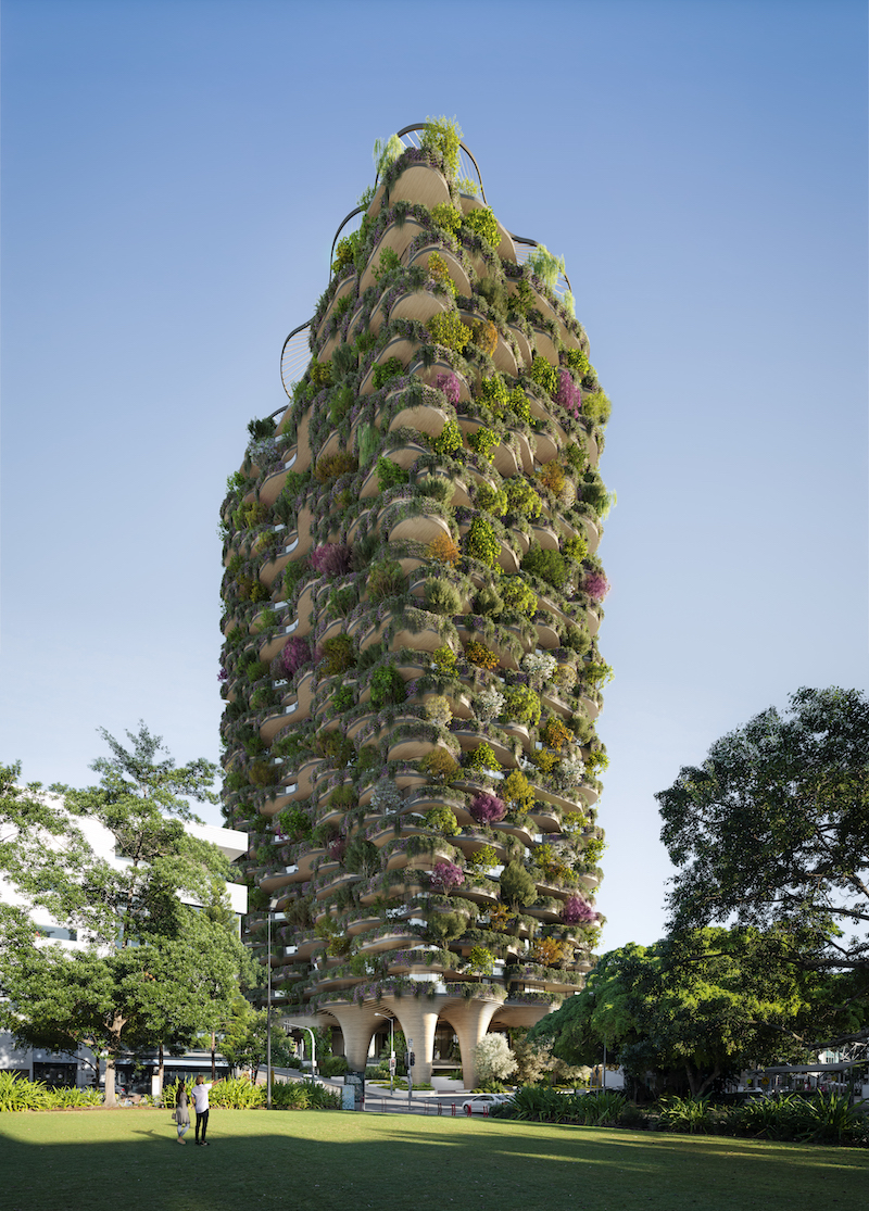 Uprostred rozsiahleho parku sa týči budova ašpirujúca na najzelenšiu na svete. Jej 30 poschodí má byť okrem rezidentov domovom aj pre 1 000 stromov a 20 000 rastlín, ktoré sú kombináciou vyše 250 druhov miestnej vegetácie austrálskeho štátu Queensland. K udržateľnosti tejto budovy však prispieva bujná zeleň len sčasti, zásluhu tiež majú stavebné materiály a dopredu plánovaný životný cyklus stavby.