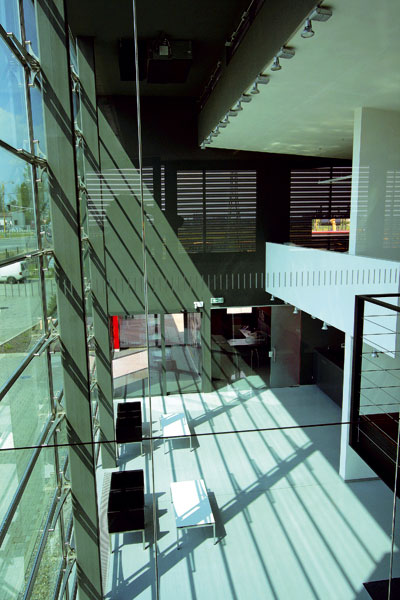„Naznačovaná otvorenosť firmy sa nekončí koncepciou interiéru. Symbolizuje ju aj transparentná a odhmotnená zasklená stena, ktorá tvorí vonkajšiu západnú stenu ústrednej dvojpodlažnej administratívnej haly,“ vysvetľuje filozofiu konceptu Martin Paulíny.