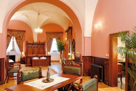 Aký je teda obnovený zámok v Haliči? Prirodzeným centrom je zámocká dvorana pod zasklenou kupolou, kde je noblesná kaviareň a zároveň miesto, odkiaľ sa dá dostať do ďalších priestorov. Druhým najväčším a najreprezentatívnejším priestorom je tzv. Župná sieň s neskorobarokovou freskovou výzdobou. K unikátom patrí aj zachovaná pôvodná kaplnka U Dobrého pastiera, kde sa po rokoch opäť konajú sobáše. V zámockom hoteli je 50 izieb s kapacitou 138 lôžok, pričom nechýba luxusný kráľovský apartmán. „Každá izba je zariadená v inom štýle a viaže sa ku konkrétnemu historickému obdobiu, ktoré zasiahlo do stavebného vývoja zámku“, hovorí Regína Vidová. „V niektorých izbách sa zachovali pôvodné historické stropy z obdobia renesancie. Vzácne maľby postáv uhorských panovníkov na chodbách prvého poschodia sú pravdepodobne zo 16. – 17. storočia. V priebehu roku 2013 sa na zámku uskutočnil ich rozsiahly výskum a dôkladná reštaurátorská obnova a pod vedením reštaurátora Vladimíra Plekanca sa preskúmalo 400 štvorcových metrov stien. Dnes si tieto skvosty v rámci prehliadky zámockého hotela môže pozrieť každý záujemca z radov verejnosti.“
