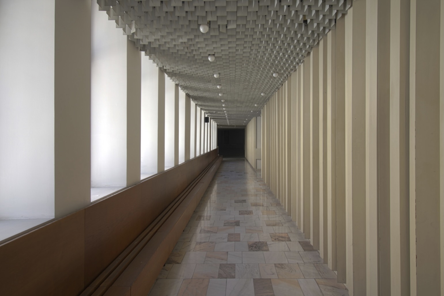 Zadná chodba s lavicou, prístup k malým pojednávacím miestnostiam