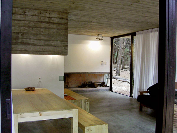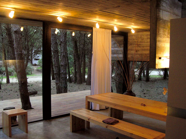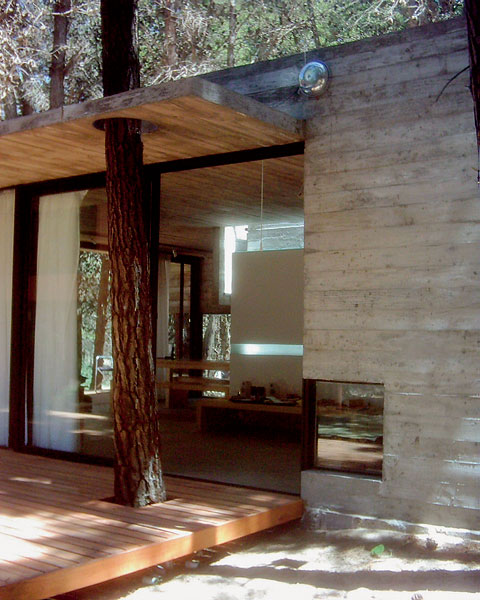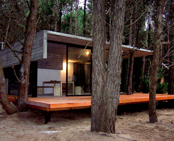 Lokalita Bosque de Mar Azul na východnom pobreží Argentíny je blízko pri ceste P11, ktorá vedie pozdĺž atlantického pobrežia z hlavného mesta do Mar del Plata. Je to asi len hodinka cesty autom do Madel, ako hovoria domáci sedemstotisícovému mondénnemu letovisku. Obrovské dvanásť a pol miliónové Buenos Aires je ďaleko, takmer štyristo kilometrov na severozápad. Práve tu, neďaleko vychýrených pláží, sa trojica argentínskych architektov rozhodla tráviť dovolenky. Uprostred borovicového hája si postavili dom, ktorý splýva s okolitou prírodou – jednoduchý, nie drahý a nenáročný na udržiavanie.