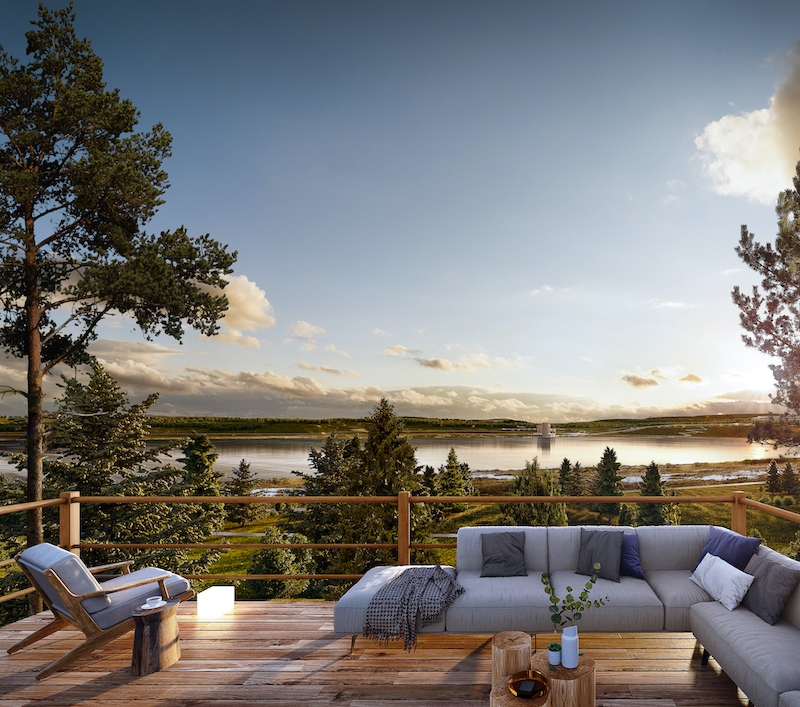 Pri bývaní pod vodou to však nekončí. V pláne je tiež výstavba nad jazerom, pri ktorej chcú architekti terasy a ich okreje, ktoré sa tu vytvorili kvôli pohybu bagrov pri ťažbe. Veď si len predstavte bývanie s výhľadom na jazero a horskými hrebeňmi v pozadí.