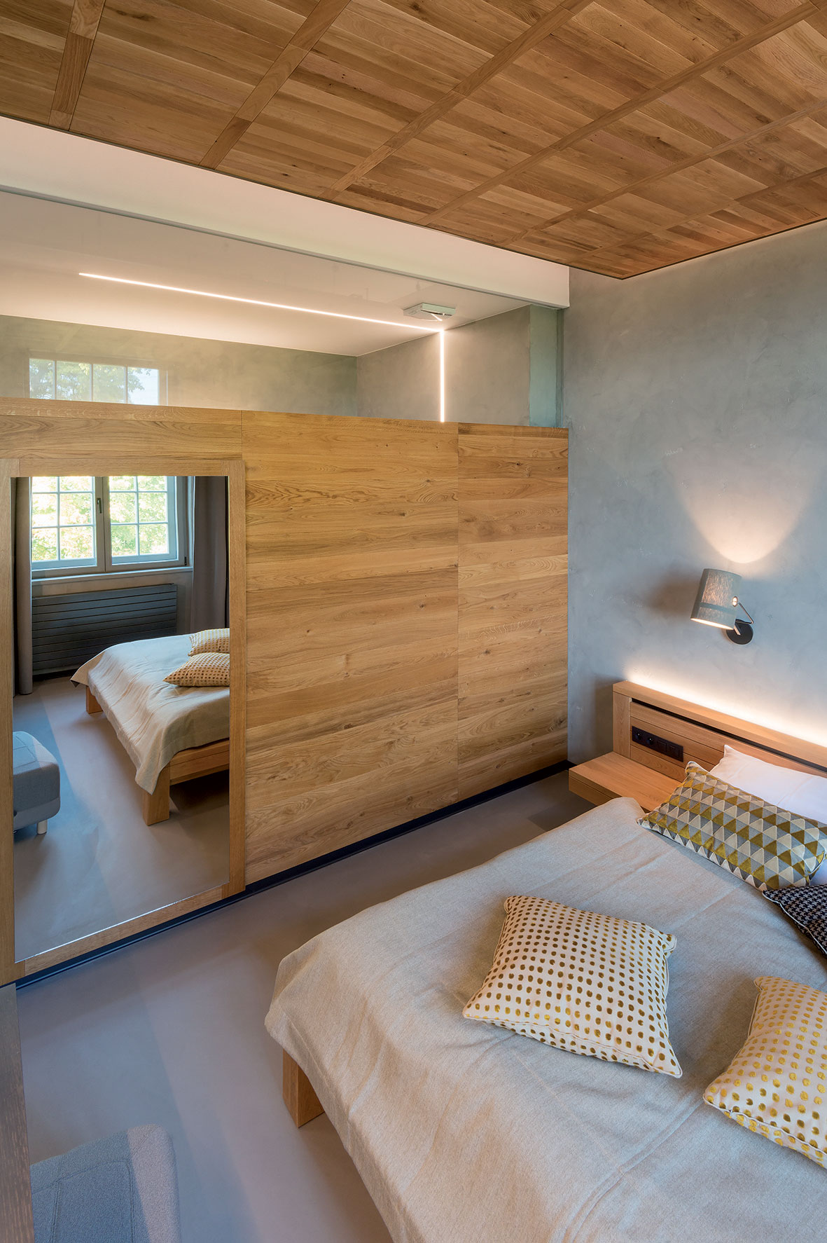 Drevené priečky sú znížené aby vynikla výška miestností.