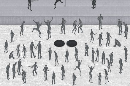 „Hra na interiér-exteriér,“opisuje svoje dielo partia štyroch architektiek, ktorá si už za svoje diela stihla vyslúžiť aj niekoľko nominácii na CE.ZA.AR. „Open air festival nemá dvere a toto dielo vymedzuje priestor práve za dverami. Čo je za dverami – ďalšie dvere.“
