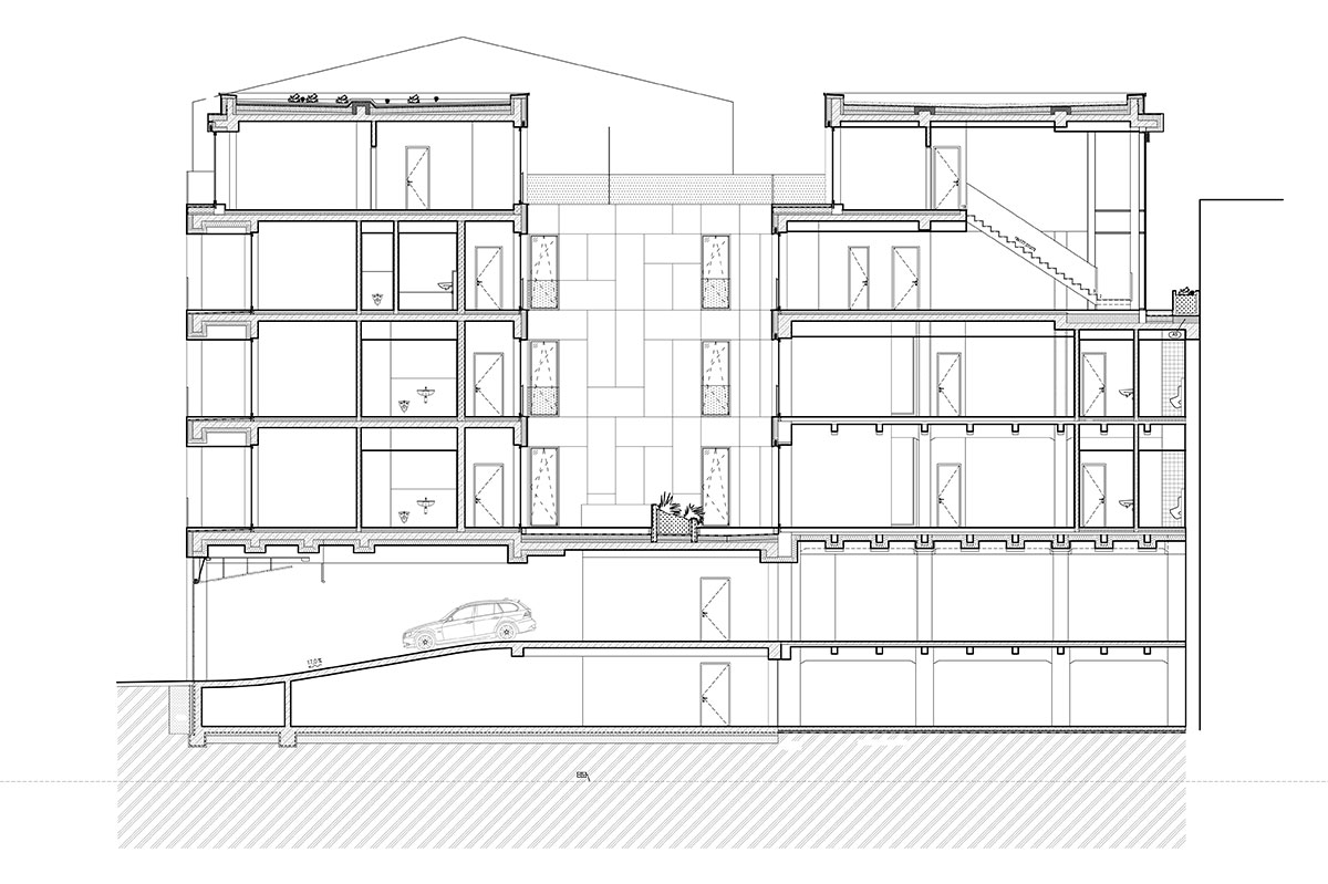 Pozdĺžny rez schodiskom.