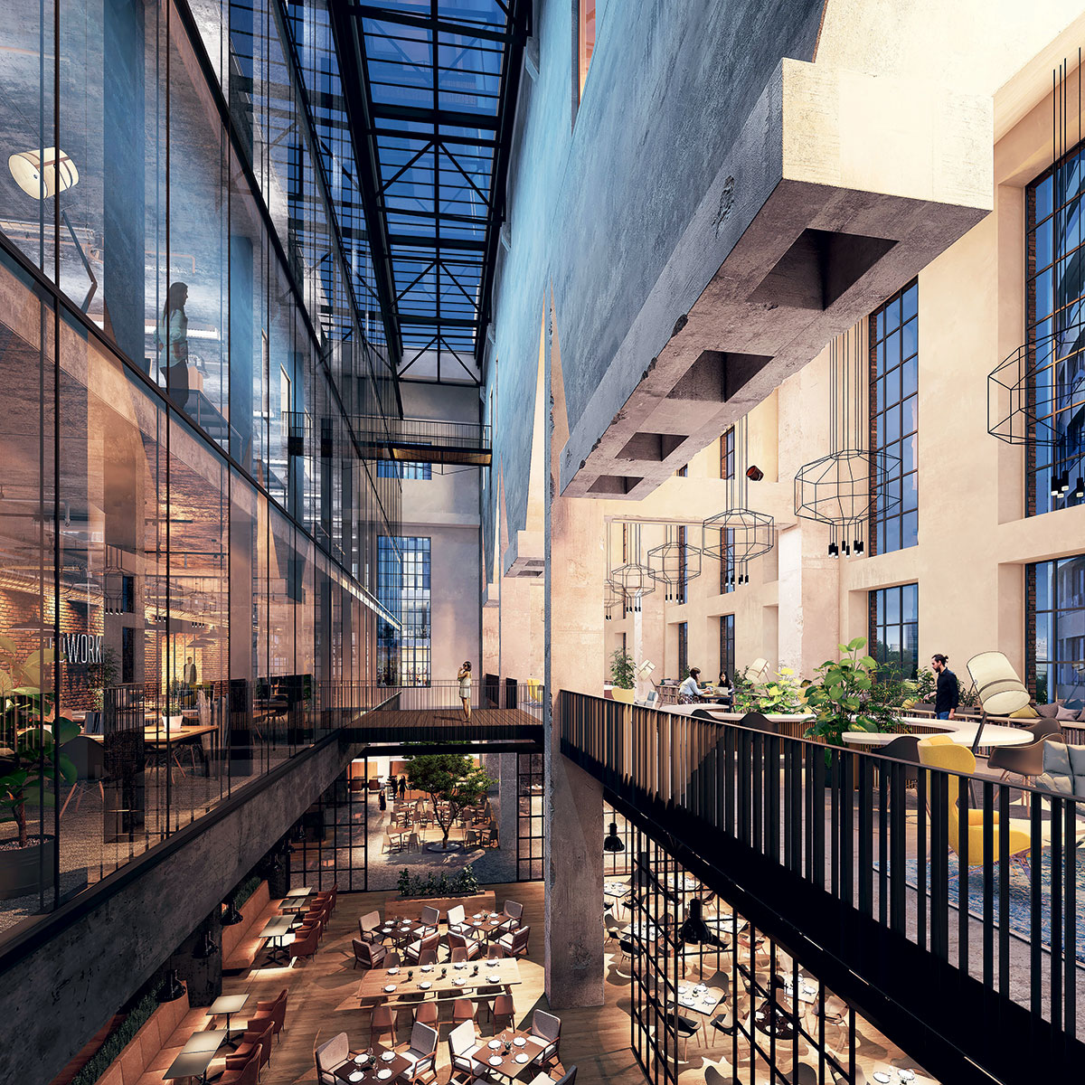 Vizualizácia interiéru Jurkovičovej teplárne po rekonštrukcii.
